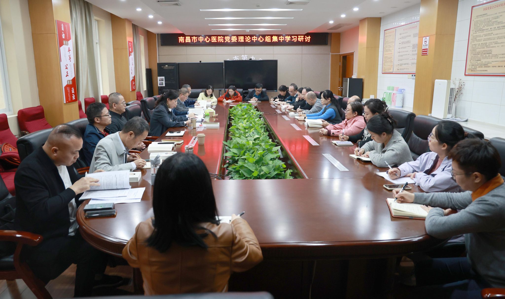 11月3日上午,南昌市中心医院在青山湖院区召开党委理论学习中心组(扩大)专题学习研讨会,深入学习贯彻 《习近平谈治国理政》第五卷。院党委副书记(牵头党委工作)彭雪琴主持会议,院党委副书记、副院长熊隆信(牵头行政工作)及在家院领导围绕学习主题依次交流发言。两院区党支部书记参加会议。