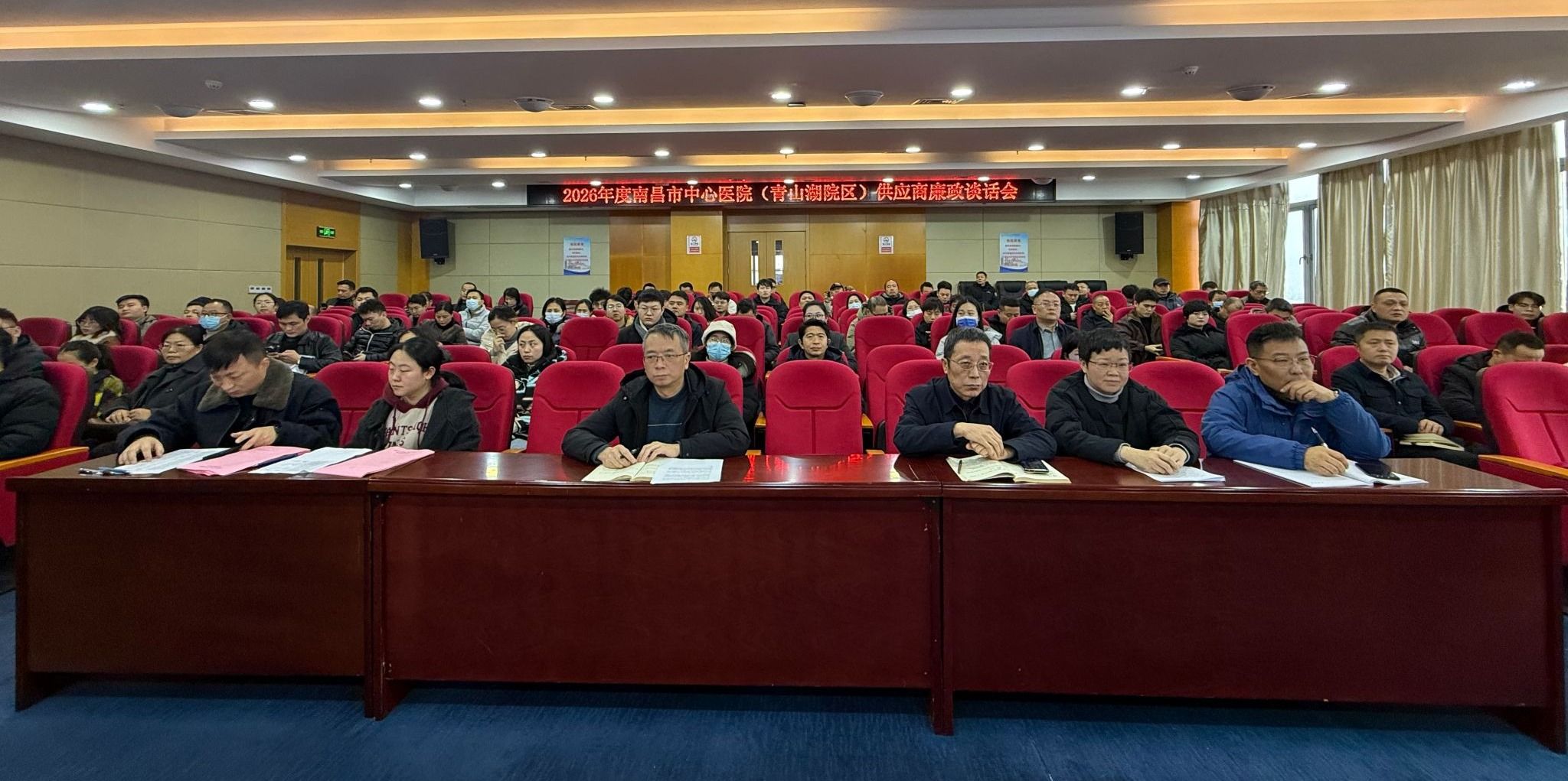 为深入推进清廉医院建设,规范医院与供应商业务往来,营造风清气正的合作生态与医疗环境,1月29日上午,我院召开2026年度供应商集体廉政谈话会。医院在家领导出席会议,相关职能科室负责人及近百家药品、耗材、第三方服务、办公用品、信息等供应商代表参会。会议以警示教育、制度解读、领导部署三重举措,为全体参会人员敲响廉政警钟,凝聚廉洁合作共识。